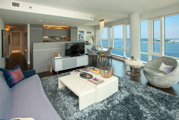 The Visionaire is the only platinum LEED certified green building in Battery Park, offering many over the top amenities including a spa, sauna, Jacuzzi, steam room, children’s playroom, parking garage, swimming pool, fitness center, and indoor lounges. There’s also a roof garden with amazing Hudson River views for barbeque and sunbathing, a lounge with a complete kitchen for residents to host party.