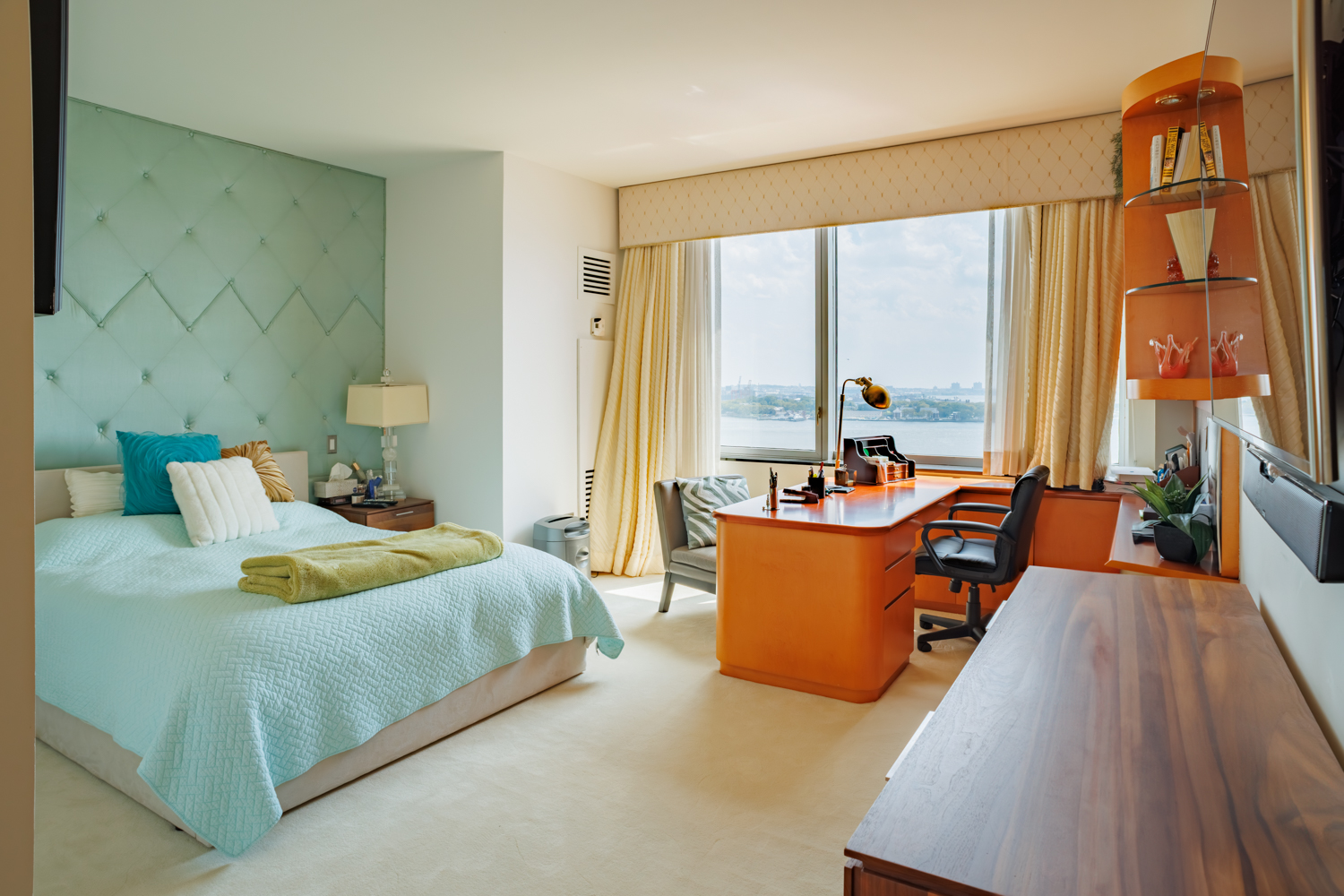 Ritz Carlton five star hotel condo, best location of ocean front property on south tip of Manhattan, south west corner over 3000SF/4 bedroom plus family room with wrap around spectacular view of Hudson River, Statues of Liberty & Battery Park, floor to ceiling windows, entire apartment is fully guts renovated with modern design & luxury large kitchen with top of the line appliance, jacuzzi bath, lots of closet and storage space. This elegant hotel condo provide free gym, spa, restaurant & hotel Service
